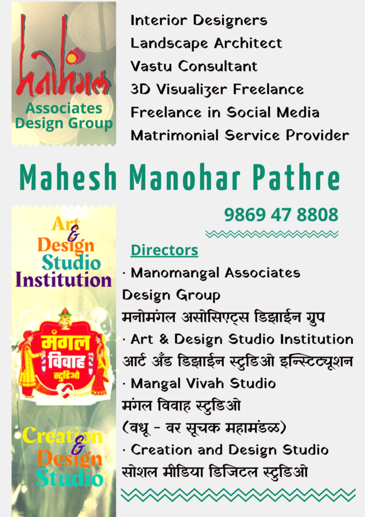 Mahesh Manohar Pathre, Director of Art & Design Studio Institutions, has over 30 years of extensive experience in the creative field. With a diverse background in interior design, landscape architecture, Vastu consultancy, graphic design and social media marketing, he has the perfect blend of artistic vision and practical skills.